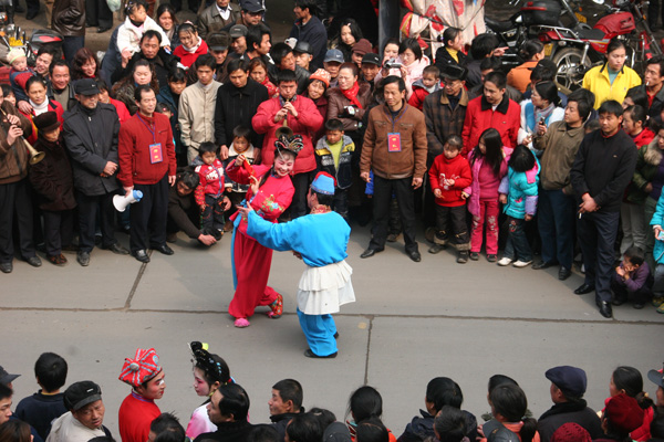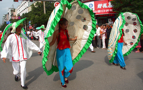 一旦一丑表演,用手巾和折扇作道具。旦的表演含蓄細膩,動作優(yōu)美輕俏,以眉目傳情(脧眉眼)為特點。丑的表演活潑聰明,俏皮逗樂,動作粗獷。流傳在境內的地花鼓有“洗菜心”、“銅錢歌”、“望郎歌”等。