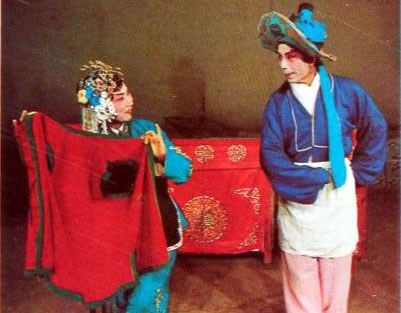 蚌殼用蔑扎骨架,蒙布或紙,外繪蚌紋,以紅綠綢鑲邊,內貼水銀碎鏡片。由一旦一丑表演。旦扮蚌殼精,身背蚌殼,表演“扯四角”、“開蚌”、“戲水”、“整容”、“照鏡”、“戲翁”等動作,含蓄逗趣,活潑可愛。丑扮魚翁,手持撒網(wǎng),表演“踩水”、“窺蚌”、“戲蚌”等動作,詼諧風趣。常令人捧腹。伴奏以弦樂為主,伴以竹笛,幽雅悅耳。