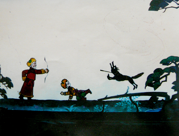 民間紙扎藝術,是用蔑做骨架,用彩紙糊成方形或圓形的燈籠,用紙片剪成人、馬,貼在紙輪上,把紙輪安放在燈籠中間。利用燈光熱氣,沖動紙輪旋轉,于是,人和馬成動感。