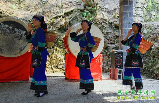 ①仙人合竹:從游客中挑選一男一女,兩人面對面相隔10米左右站立,然后將兩根竹竿用雙手抓住,夾在腰間,巫師念咒之后,兩根竹竿慢慢合在一起。這一道巫術(shù)要想成功的話,對女配角的挑選很講究:月經(jīng)期間是不行的。仙人合竹是以前湘西人判斷夫妻間能否白頭偕老的法術(shù)。