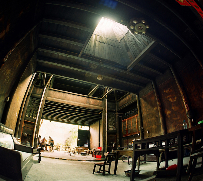 院內廂房按家室的輩分依次居住。廂房的木窗雕龍刻鳳,每一板雕刻都是一個美麗的傳說。其中《梁?!?、《天仙配》、《蚌殼燈》、《彩龍船》、《鼠叼葡萄》、《老鷹抓雞》等雕刻更是入木三分,惟妙惟肖。樓上則主要用于囤積貨物,擺放雜物、晾曬衣物等。后側建有伙房和廁房,院落后部則是花園,花園的盡頭緊連著河邊的私家碼頭。