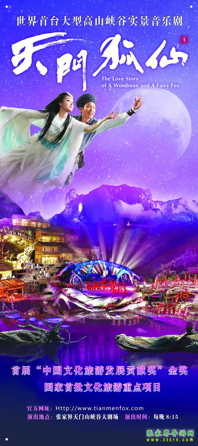 《天門狐仙》于2009年9月9月17日晚,“張家界大型山水實景音樂劇《天門狐仙》正式開演”,世界第一臺大型山水實景音樂劇正式與國內(nèi)外觀眾見面。