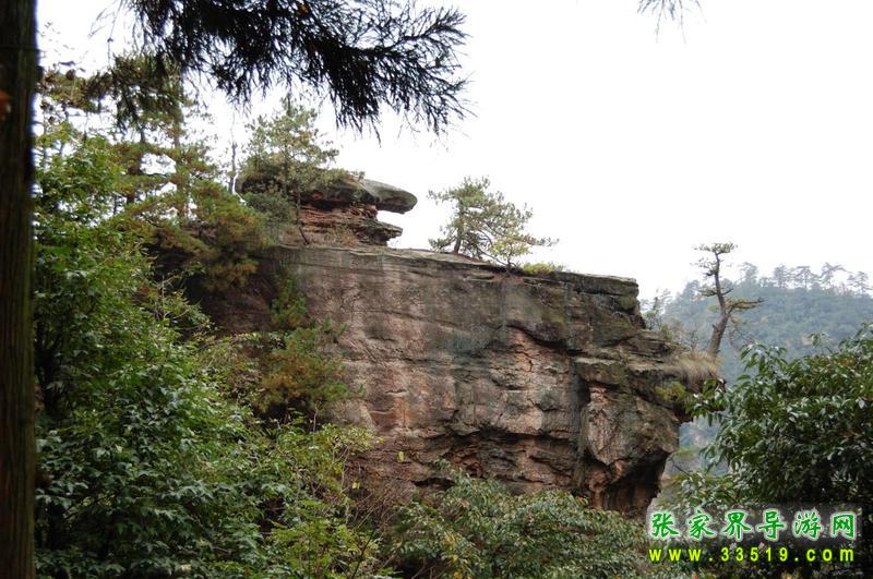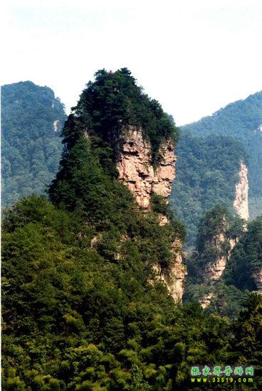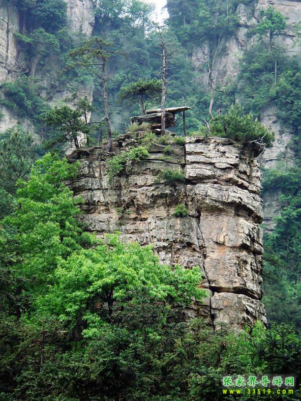 這座拔地而起高300多米的巨大山峰,四面絕壁,頂部面積約4公頃,上面長著黑黝黝一大片原始森林。20世紀(jì)70年代,曾有林場工人試圖爬上去考察,但因下雨石滑,無功而返。借助望遠(yuǎn)鏡,可以清楚地看到上面生長的武陵松——說起武陵松(又名巖松),可能沒有黃山松那么出名,但其特色卻絲毫不遜于黃山松,堪稱張家界一絕。有人說:“桂林醉人是漓江清,峨眉風(fēng)流是金頂云,華山險(xiǎn)在倚天看,廬山美在泉中聽,不及湘西武陵源,數(shù)千奇峰纏綠云,石上長森林。”“石上長森林”說的就是武陵松。她“千年長不大,萬年長不老”,長在絕頂之上或絕壁之中,不論風(fēng)吹雨打,嚴(yán)寒酷署,總是精神煥發(fā),一看見這瘦小而蒼勁的武陵松,就不由讓人頓生對(duì)生命的敬意。