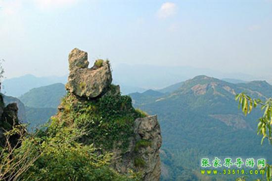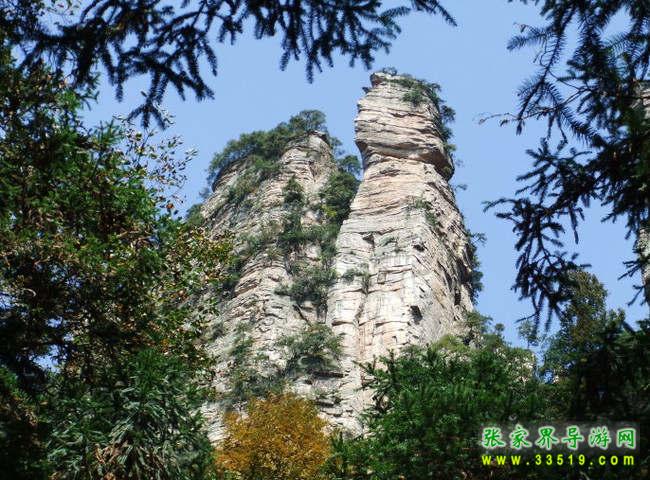 兩支山峰圍成一道天然小石門,大有“一夫當(dāng)關(guān),萬夫莫開”之勢,人稱南天門,據(jù)說過了這道門就是天堂。不過,說來也奇怪,穿過山門之后,山勢為之一變,奇峰怪石,蒼松翠柏,美不勝收,不是天堂,勝似天堂。前面這支位于南天門身邊高200多米的孤立石峰,叫南天一柱。它與一般的山峰不大相同,一般的山峰是下面粗、上面細(xì),而它是上面粗、下面細(xì)。山風(fēng)吹來,這根石柱好像搖搖欲墜,驚心動(dòng)魄之余,仿佛耳邊還能隱隱約約聽到億萬年前地殼運(yùn)動(dòng)時(shí)發(fā)出的轟隆隆的巨響——為了“安全”我們還是繼續(xù)往前走吧。