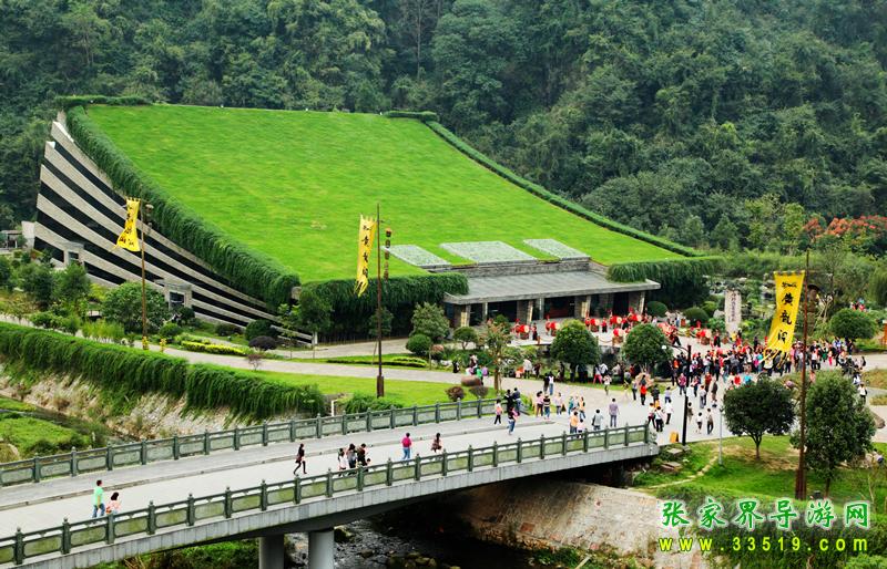 依山傍水而建的土家庭院,總面積有10826.7平方米,形成土家建筑群,分布了商鋪、茶樓、飯店、辦公區(qū)域。哈利路亞音樂廳是廣場中最大的建筑,它采用了全國獨一無二的斜屋坡面綠化,具有演藝和展示雙重功能,外墻裝飾有流線性的藝術(shù)美感,屋頂綠化與大自然相融,點綴著多色草木,色彩繽紛,形成了“空中花園”的自然觀感。