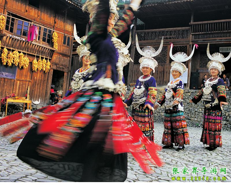 苗族在歷史長河中創(chuàng)造了珍貴的文學藝術。苗族民間文學分為民間歌謠、民間故事和諺語三大集成。民間歌謠分為史詩、古歌、苦歌、敘事歌、生產歌、風俗歌、起義歌、情歌、兒歌等,能唱的韻文作品有《遷徙歌》、《勞動歌》、《開親歌》、《盤龍歌》、《盼紅軍》、《送兒當紅軍》、《苗家想念紅軍》、《初戀歌》、《定姻緣歌》等。民間故事有《雷公和高比的故事》、《崇山的傳說》、《蘆笙是怎樣吹起來的》、《謊江山》、《石姓不吃狗肉》、《龍家姐妹》、《紅軍樹》等。苗族民間藝術分為音樂、舞蹈、戲劇和工藝四類。音樂又分為苗歌和樂器兩類。苗歌按其腔調分為高腔、平腔兩類;樂器按演奏方式分為打擊樂器和吹奏樂器兩類。打擊樂器有銅鼓、銅鑼、銅鈸和鈴等。吹奏樂器有嗩吶、蘆笙、長號、筒簫等。苗族舞蹈有木鼓舞、蘆笙舞、跳香舞和接龍舞。苗族戲劇有儺堂戲、花鼓戲和苗戲等。苗族工藝有刺繡、挑花、織花帶、織提籃、織背簍、蠟染和銀飾等。其中,苗繡、花帶、苗族織錦、苗族銀飾、蠟染服飾和飯簍等工藝品已經成為張家界風景區(qū)的旅游紀念品,為海內外無數游客喜愛。