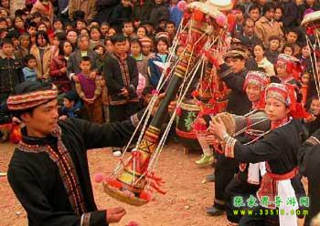 仗鼓舞是白族的一種獨特舞蹈,尤其是張家界天子山一帶的白族人,大都愛跳仗鼓舞。逢年過節(jié)、游神、趕會,山山寨寨都要舉行歡樂的“跳舞節(jié)”。仗鼓舞根據人數多少,分為4人舞、8人舞、32人舞等多種形式,主要道具是仗鼓,鼓長1.2米,兩頭粗,中間細,因兩頭緊繃牛皮,敲擊時便“嘭嘭”作響。跳舞前須祭祀祖先,然后由三位德高望重的老者先入場引導圍圈歡跳,擺呵、蹬呵、拍呵,繞著場子一圈又一圈地跳,鼓聲陣陣,還有嗩吶、笛子等樂器伴奏,舞姿靈活多變,古樸大方,驚險敏捷,民族色彩濃郁。