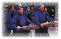 指著圓符,不久,蒙面者便神魂入定;似有神附體,慢慢地全身抖動(dòng)起來(lái),手舞足蹈,這就是已“進(jìn)入陰間”。據(jù)傳過(guò)陰之人,雖蒙頭蓋面,也能辨別方向,隨法師的指使行事,陰間之事能有問(wèn)必答,人們所要了解之事,也都從他們那里得到答復(fù),并可以探求禳解之法。法師用法術(shù)指使他們?nèi)プ龈鳂邮虑?。到一定時(shí)間,法師用咒語(yǔ)報(bào)他們招回,他們?cè)诜◣煹闹甘鞠?,陸續(xù)返回陽(yáng)世清醒過(guò)來(lái)。若有個(gè)別不能返回,法師則加倍對(duì)他們施法,用刀指向他,并念咒畫符,強(qiáng)令返回。過(guò)陰之人蘇醒后,法師揭開頭蓋,這時(shí)個(gè)個(gè)面色慘白,目光遲鈍,如害一場(chǎng)大病。法師再施以復(fù)原之術(shù),使之慢慢復(fù)原。他們復(fù)原后,完全忘記陰間的事情。