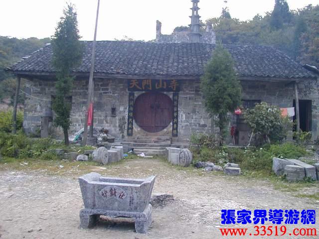 (天門山寺)天門山寺最早建于唐代,古稱云缽庵、靈泉院、嵩梁堂,明代時,因擇址不當(dāng)而屢遭風(fēng)摧又常遭水荒,才將天門山寺從東部山頂遷移至此。以前這里古木參天,濃蔭蔽日。古寺門楣上刻有“天門仙山”四字,大門兩邊的對聯(lián)是:“天外有天天不夜,山上無山山獨尊”,傳為李自成部將野拂撰書。進門為大佛殿后面有觀音堂,兩邊六間平房,最后一棟是祖師殿,規(guī)模宏大。民間概括為“三進堂、六耳房,磚墻鐵瓦鍋如壙”。山寺原建筑十分講究,飛檐翹角,雕龍畫鳳,并塑有佛道神像菩薩等。還有大鼓一面,千斤大鐘一口,一座七級石塔和一個大化錢爐。據(jù)碑刻記載,自清乾隆至民國五年的163年間,天門山寺共修葺過七次,香火曾盛極一時,湘鄂川黔邊境十多個縣的信徒絡(luò)繹不絕,都來這里進香拜佛?,F(xiàn)天門山旅游股份有限公司正在大規(guī)模地修復(fù)天門山寺,昔日的繁華又將重現(xiàn)。