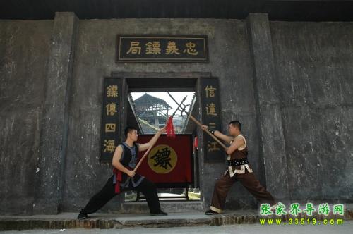 忠義鏢局,它始建于清乾隆四十二年(1777),位于洪江龍船沖,這里會(huì)館、錢(qián)莊、豪宅林立,堪稱(chēng)洪江的曼哈頓。與我們?cè)?a class="insidelink" href="http://www.yckljd.com/hongjiang/" target="_blank" title="洪江古商城">古商城看到的窨子屋不同,這是一座典型的北方四合院,前庭后院,布局嚴(yán)謹(jǐn),軸線明確,左右對(duì)稱(chēng),主次分明。前院是鏢師練功習(xí)武之地,墻壁上書(shū)有“忠”、“孝”、“禮”、“義”四字和“十八羅漢練功圖”;后院為鏢師起居和洽談生意之所,內(nèi)供奉關(guān)武大帝。忠義鏢局主要為豪商巨賈押運(yùn)銀票、貨物,看家護(hù)院,坐夜守店,也開(kāi)館收徒,傳授武藝。忠義鏢局的掌門(mén)人劉大鵬,湖南長(zhǎng)沙人,幼時(shí)即入嵩山少林寺習(xí)武,不僅精通十八般武藝,而且頭腦精明,他把鏢局開(kāi)在這洪江最繁華的金融一條街,足見(jiàn)他的經(jīng)商意識(shí)和人面廣了。現(xiàn)在忠義鏢局現(xiàn)場(chǎng)表演古代押鏢、行鏢全過(guò)程,是人們了解中國(guó)古代鏢行歷史文化的活性博物館。有興趣的朋友可以去洪江古商城親自感受一下當(dāng)時(shí)押鏢的情景吧。