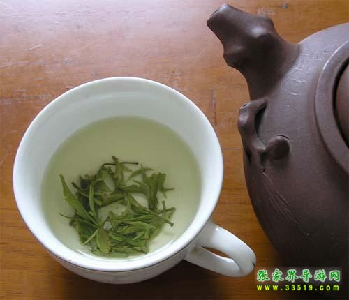 武陵源風(fēng)景區(qū)盛產(chǎn)香茶,著名的有“青巖茗翠”、“龍蝦花茶”、“黃石寨云霧茶”、“天崇毛尖”與“索溪毛尖”等。通過(guò)1982年評(píng)比,“青巖茗翠”獲部級(jí)金杯獎(jiǎng),同年又獲全國(guó)首屆食品博覽會(huì)銀獎(jiǎng)。“龍蝦花茶”也已列入全國(guó)名茶。人們經(jīng)過(guò)品嘗、評(píng)比,并經(jīng)茶葉專家鑒定,一致認(rèn)為“青巖茗翠”、“龍蝦花茶”等具有外形美觀,內(nèi)質(zhì)優(yōu)良等特點(diǎn)。這種茶葉,從外形來(lái)看,條索緊結(jié),圓渾彎曲,苗鋒顯露,銀毫滿披,色澤翠綠,從內(nèi)質(zhì)來(lái)看,清香馥郁,味醇回甘,湯色綠明,葉底均勻,飲后爽神,具有熟板栗蘭花之奇香,飲后回味無(wú)窮。據(jù)考證,“青巖茗翠”屬高山云霧茶一類。自古道:“高山出好水,云霧育佳茶”。黃石寨枇杷界海拔1000多米,氣候溫和,云霧繚繞,溫度適宜,因而,茶葉嫩度高,品質(zhì)好。這種獨(dú)特的環(huán)境為茶葉中的氨基酸,咖啡堿等有效成分的形成和增長(zhǎng),提供了優(yōu)越的生長(zhǎng)條件,而對(duì)質(zhì)地粗老的纖維素的形成,則又起到了抑制作用。還有,這些山峰上日照短,直射光少,漫射光多,晝夜溫差大,土質(zhì)的有機(jī)質(zhì)豐富,因而結(jié)構(gòu)疏松,排水又好。一切這些因素,都為茶葉的平穩(wěn)生長(zhǎng)創(chuàng)造了良好的條件。所以“青巖茗翠”茶,就博得了各地名家的一致好評(píng)。湖南省茶葉學(xué)會(huì)秘書(shū)長(zhǎng)、湖南農(nóng)學(xué)院副教授朱先明品了這種茶以后,賦詩(shī)贊美: