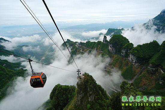 登天門山不需要爬山,至位于張家界市區(qū)的天門山索道下站,乘世界最長高山客運索道—天門山索道(長7.5公里)直達山頂,沿途可先鳥瞰美麗山城的醉人景 致,再飽覽清新靜謐的鄉(xiāng)村田園,然后緩緩飛渡進奇峰險壑的懷抱中,在山尖與陡崖之上不斷爬升,體驗騰云飛翔的刺激與震撼,30分鐘到達天門山頂原始空中花園。